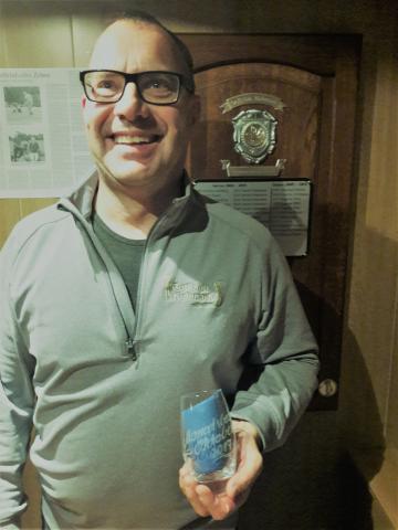 Im trockenen und vorgeheiztem Clubhaus wurde die Siegerehrung durchgeführt und Sepp bekam als bester Spieler des Tages den Monatsbecher Oktober 2017 ausgehändigt.
